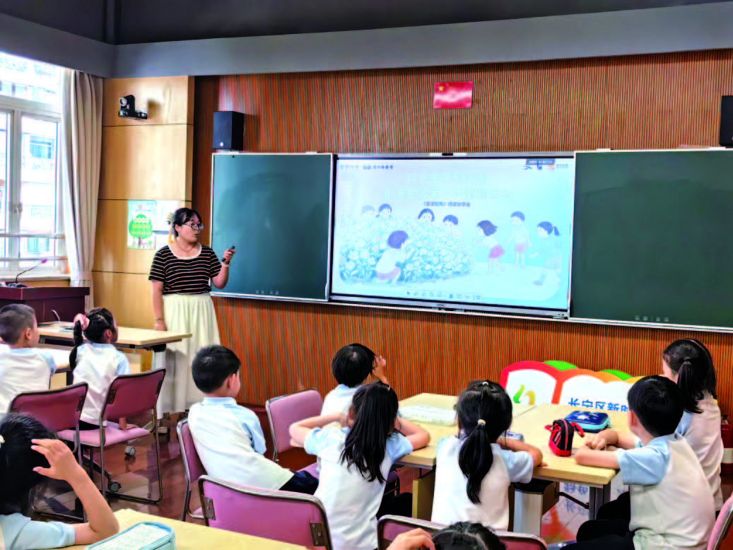 近日,区文明办、区图书馆携手新华路街道图书馆,联合东方出版中心在复旦小学举办了“打开童年时光机,走进金波笔下的童趣世界——《金波别集》阅读分享会”,将图书馆的资源“搬进”校园。图左为活动中,孩子们在老师的带领下,进行传统游戏“拔根儿”比赛。