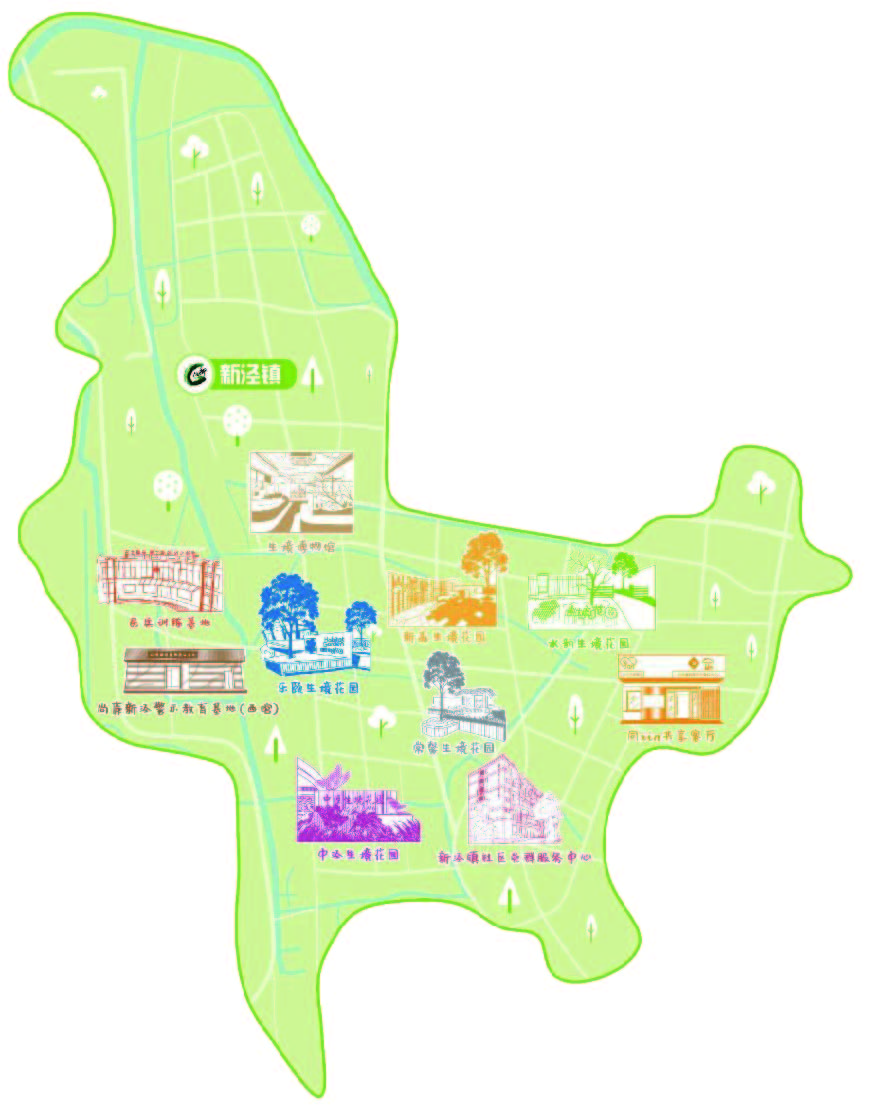 新泾镇推荐了5个特色点位:作为“家门口的服务综合体”的新泾镇社区党群服务中心;以蝴蝶为主题设计的中泾生境花园;可以看书、蹭网、喝咖啡的“同Xin共享客厅”,以及全面从严治党警示教育基地(西馆)和生境博物馆。