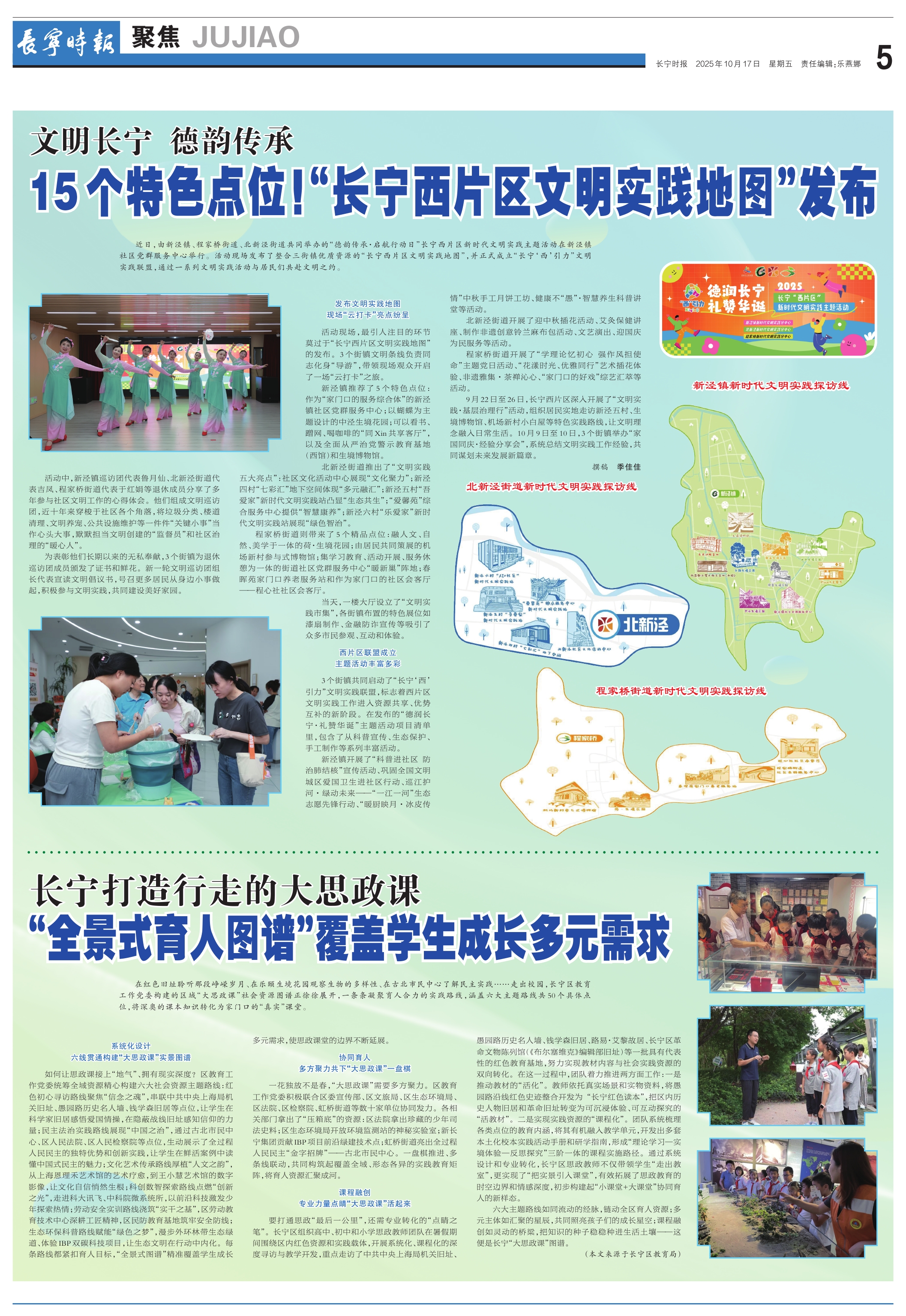 六大主题路线如同流动的经脉,链动全区育人资源;多元主体如汇聚的星辰,共同照亮孩子们的成长星空;课程融创如灵动的桥梁,把知识的种子稳稳种进生活土壤——这便是长宁“大思政课”图谱。