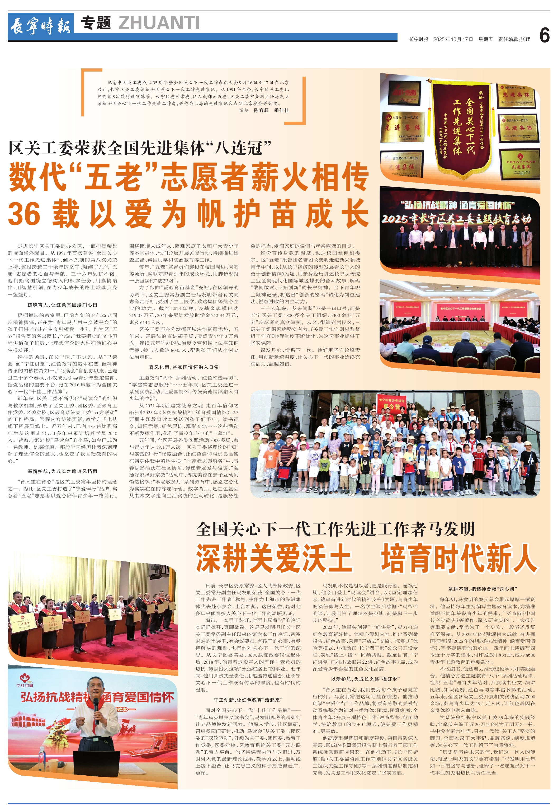 “历史是写给未来的信,我们这一代人的使命,就是让明天的长宁更有希望。”马发明用七年如一日的坚守与创新,诠释了一名老党员对下一代事业的无限热忱与责任担当。