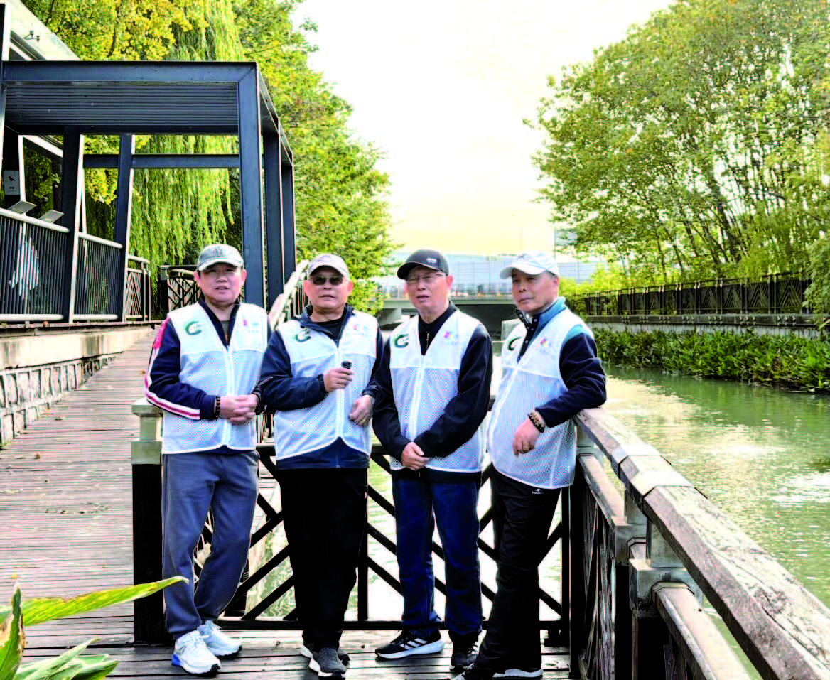在新泾镇绿八居民区,有一座被居民们津津乐道的“宝藏花园”——乐颐生境花园。每天清晨,72岁的戈兆宏总会背着手,在园子里转上一圈。他身后,常常跟着3位老伙计:崔光辉、李智浩、贺正南。居民们笑着称他们为“F4”——不是偶像剧里的花样美男,他们修剪植物、检查设施、记录物种……是这座社区花园的“守护者联盟”“灵魂守护者”。五年间,他们与社区共同见证了一片小区的卫生死角蝶变为入选“生物多样性100+全球典型案例”的生态奇迹,而这,正是长宁区“十四五”期间打造“公园城市”的缩影。